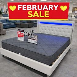 White Queen Size Platform Bed W/ Charging Station & Built-In LED Lights // Mattress Sold Separately $259Moreno Valley, CA