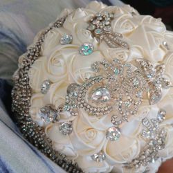 3 Ivory Bridal Bouquets of artificial flowers White, vases not included