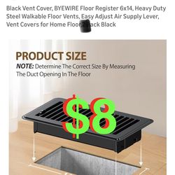 Black Vent Cover, BYEWIRE Floor Register 6x14, Heavy Duty Steel Walkable Floor Vents, Easy Adjust Air Supply Lever, Vent Covers for Home Floor, 1 each$8Alta Loma, CA