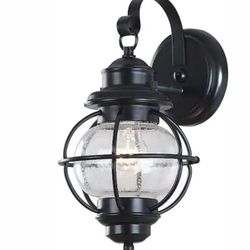 NEW IN BOX- Greer 13.5 in. 1-Light Hardwired Black Outdoor Wall Light Lantern Sconce with Caged Seeded Glass$55Riverside, CA