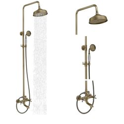 Gotonovo Luxury Exposed Shower Faucet Set - 8 Inch Wall Mount Rainfall Shower Head with Handheld Spray and Cross Double Handle Fixture in Antique Bras$90Ontario, CA