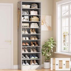 Narrow Shoe Cabinet, 10 Tiers Tall Wood Shoe Rack, Shoe Storage Organizer with Open Storage, Vertical Shoe Shelf Tower for 20-22 Pairs, Space Saving, $100Fontana, CA