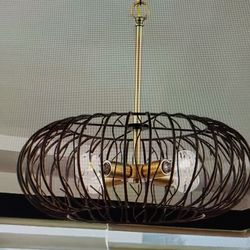 Kala 60 Watt 4 Light Brushed Gold Pendant with Makamae Painted Shade $50Riverside, CA