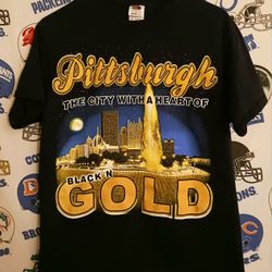 Pittsburgh Pennsylvania Cityscape Black And Gold Steelers Graphic Tee Shirt$20Rialto, CA