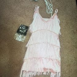 New Medium Pink Flapper Dress Costume Accessories Fringe $30Mount Baldy, CA