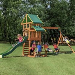Outing III Wooden Outdoor Playground Set with Vinyl Roof, Slide, Sandbox, Rock Wall, Swing Set, and Playset Accessories$500Rancho Cucamonga, CA