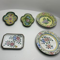 Antique Chinese Canton Enamel on Copper Trays Set of 5 Qing Dynasty Floral$110Riverside, CA