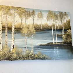The "Tranquil Forest" series of birch tree canvas art created by Allison Pearce.$5Montclair, CA