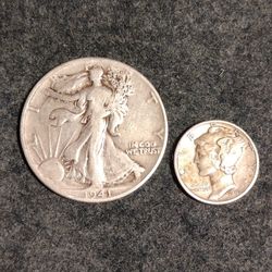 Walking Liberty Half & Mercury Dime 1941-P $40Riverside, CA