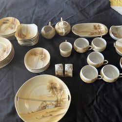 Mid Century Japanese Temple & Rural Wall Art Panels Print on Fabric Pair Vtg New$75City Of Industry, CA
