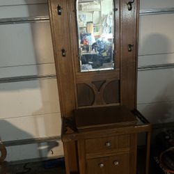 Vintage Oak Hall Tree W Storage Below$120San Bernardino, CA