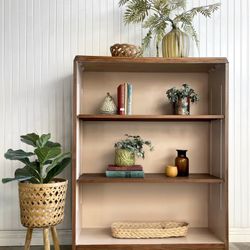 Boho Vintage solid wood Walnut Book shelf Bar Display cabinet $265Rancho Cucamonga, California