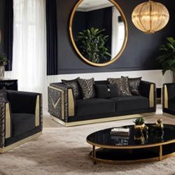 3PCS SOFA SET BLACK VELVET GOLD ZEBRA PRINT (f) FREE LOCAL DELIVERY $2699 $2,699Pomona, CA