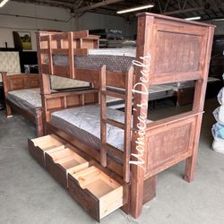 Solid Wood Twin/Twin Bunk Bed With 3 Drawers And Both Mattresses $1,000$1,000Riverside, CA