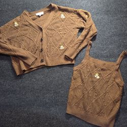 Large Brown Crochet Knit Matching Set Cardigan And Cami$15Menifee, CA