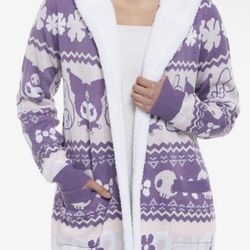 My Melody & Kuromi Sherpa Hooded Womens Open Purple Cardigan With Pockets Size Medium$60Chino Hills, CA