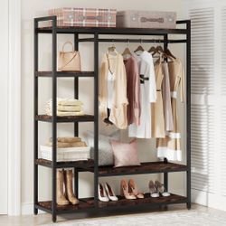 Garment Rack and Storage Shelves, Heavy Duty Closet Rack with Hanging Rods,4 Drawers, T Shaped Coat Rack Closet Organizer, Vintage Brown$90Riverside, CA