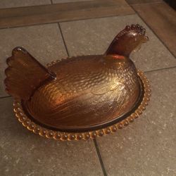 Vintage Amber Gold Chicken And Basket Glass $85Oak Glen, CA