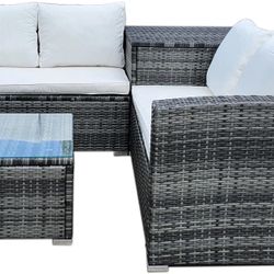 4 Piece Outdoor Sectional Sofa Set, Rattan Patio Storage End Table Deck Yard Garden Poolside Wicker Furniture Couch Table & Cushions Side Summer Grey$399Brea, CA