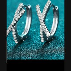 Real Silver Zircon Diamonds Hoop Earrings $25Perris, CA