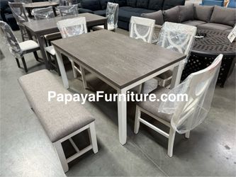 New! 6pcs Dining Set, Table And Chairs, Bench, Grey Table , White Table, Chairs, Farmhouse Furniture, Farmhouse Dining Set, Kitchen Table, Dinette Set$399Chino, CA