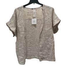 NEW Valentina Naldi Linen Shirt Open Front Top Beige Women’s OSFA Embroidered Short Sleeve Shirt$41Glendora, CA