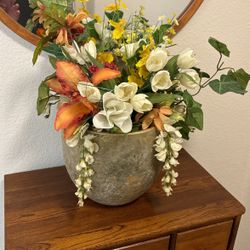 Gold Ceramic Vase With Silk Flowers Arrangement$40Redlands, CA