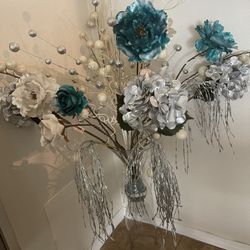 Glass Vase With Decor Vase. Silk Flowers In The Vase$30Corona, CA