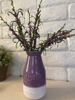 Purple ceramic vase with artificial purple flowers$8Walnut, CA