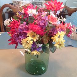 Silk Flowers in Green glass Vase$5San Bernardino, CA