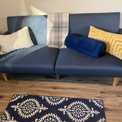 SOFA COUCH MID CENTURY MODERN BLUE LINEN WALNUT FINISH FUTON SOFA ADJUSTABLE BED - SILLON CAMA$499Rancho Cucamonga, CA