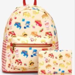 Loungefly Mini Back Pack Strawberry Shortcake Pie Toss (9"x5"x10 ) and Wallet