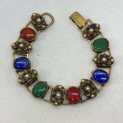 Vintage Victorian Revival Gold-Tone 7in Book Chain Bracelet with Cabochons$60Irvine, CA