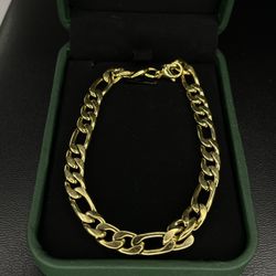 14k Yellow Gold Plated Figaro Link,Yellow Gold Bracelet,Figaro Link Bracelet,Unisex Gold Bracelet,Unisex Figaro Link Bracelet,Mens Figaro Bracelet$40Moreno Valley, CA