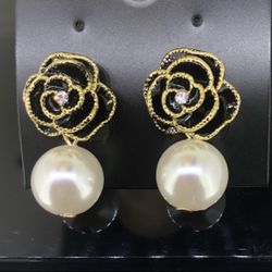 Camellia Flower Enamel Pearl Dangle Earrings$15San Dimas, CA