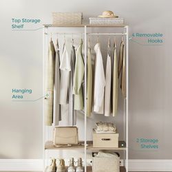 Clothes Rack, Iron and Wood Wardrobe Closet Organizer, Heavy Duty Garment Rack with Hanging Rods, Closet Shelves, Removable Hooks, 15.7 x 37.2 x 70.9 $50Rancho Cucamonga, CA