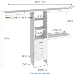 Closet System with Drawers, 5-8FT Closet Organizer Systems with Expandable Hanging Rods, 96" Closet Shelving Systems for Walk in Closets, Heavy Duty W$100Rancho Cucamonga, CA