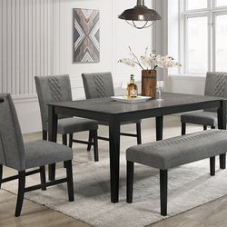 KITCHEN DINING TABLE MODERN CASUAL BLACK GRAY 6 PIECE DINING TABLE SET BENCH CHAIRS - MESA SILLAS BANCO$799Fontana, CA