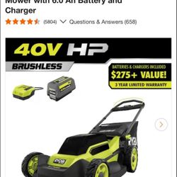 Ryobi 40V HP Brushless 20 in. Cordless Battery Walk Behind Push Lawn Mower with 6.0 Ah Battery and$190Highland, CA