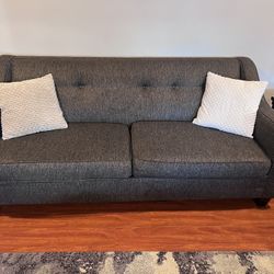 Ashley Monaghan Sofa and Loveseat Set- sandstone beige chenille upholstery, spa mist and jacquard paisley pillows$499Irvine, CA