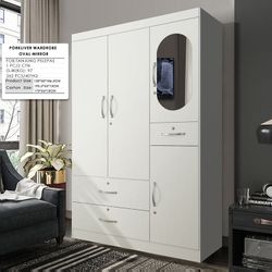 Homy Casa Porkliver 47.2" White Wardrobe Closet with Oval Mirror Drawer Storage Hanging Rod Modern Bedroom Cabinet Open Box$199Rancho Cucamonga, CA
