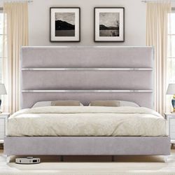 King Bed Frame with 59" Tall Headboard, Velvet Upholstered Platform Bed with Mirrored Silver Plating$150Chino Hills, CA