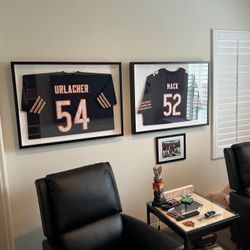 2 Framed Chicago Bears Jerseys, Brian Urlacher and Khalil Mack. Also, Soldier Field Light Up Table $900Laguna Hills, CA