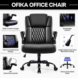 Leather Office Desk Chair,Ergonomic Office Chair with Lumbar Support,Computer Chair,Executive Leather Chair with Padded Flip-up Arm,Adjustable Armrest$60Ontario, CA