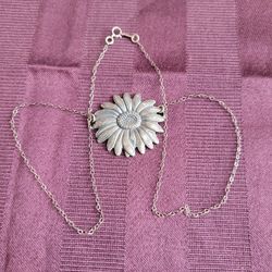 Sterling Silver 925 Chain 17" With Sunflower Silvertone/Copper Pendant 1.5" F12 $15Diamond Bar, CA