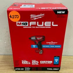 MILWAUKEE 2759-20 M18 FUEL W/ ONE-KEY 1/2” IMPACT WRENCH W/ PIN DETENT (TOOL ONLY).$250Rialto, CA
