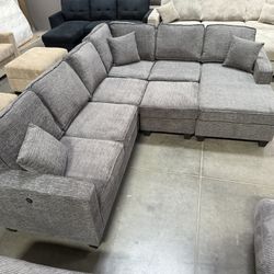 New Sectional Sofa, Reversible Chaise Sectional, Chenille Sectional Couch, Gray Couch, Sectional sofa And Ottoman, Grey Sectional, Fabric Couch, USB $799Chino, CA