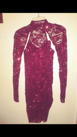 WEISSMAN DANCEWEAR COSTUME! Burgundy Sparkle Sequin Long Sleeve Dress with Underarm and Back Cutouts, Biketard Attached. Size ( S ) Adult$26Covina, CA
