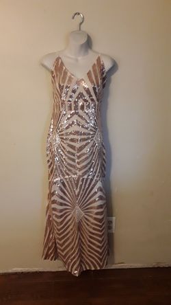 Nice prom dress! Rose gold long dress sequin halter top$35San Bernardino, CA