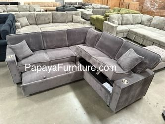 NEW L Shape Sectional Sofa with Storage Chaise Dark Grey Fabric Pullout Sleeper Bed USB Cup Holder Discount Furniture Ashley Style Clearance SALE$415Ontario, CA